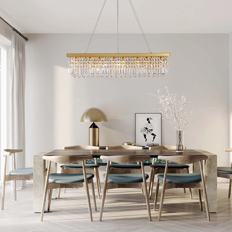 | Special Features | Adjustable Height, Luster Matt Gold Light Fixture Frame, Top K9 Chandelier Crystal, Dimmable when using dimmable bulbs and switch (not included) |